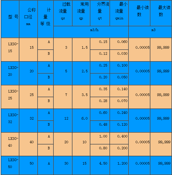 b.从包括分界流量(qt)至包括过载流量(qs)的高区:±2%(热水水表为±3%)